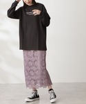 女性らしさが際立つ、N.大人気のレーススカート。夏定番のフォトTシャツでカジュアルアップしたスタイリングです! ハイウエストなので簡単にスタイルアップでき、トップスを綺麗めにすればONスタイルでも大活躍です◎