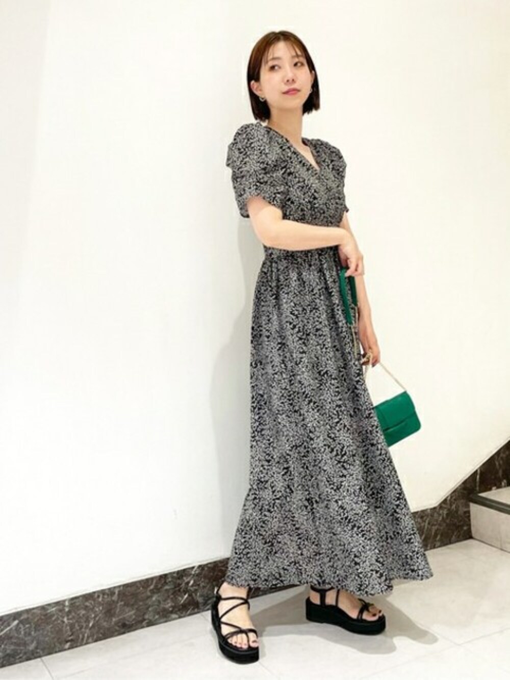 N. STAFF(N. Natural Beauty Basic* OFFICE)のワンピース「【追加生産】【S Size Line】◆プリントパワーショルダーワンピース」を使ったコーディネート