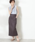 ハイウエストでスタイルアップを叶えてくれるタイトスカート♪ 麻混の生地で清涼感があるので夏にピッタリな1枚。サスペンダー付きで取り外し出来るので着まわししやすいです! 今回はN.で定番で人気の総針ニットのブルーと合わせて華やかさもあるコーデに◎