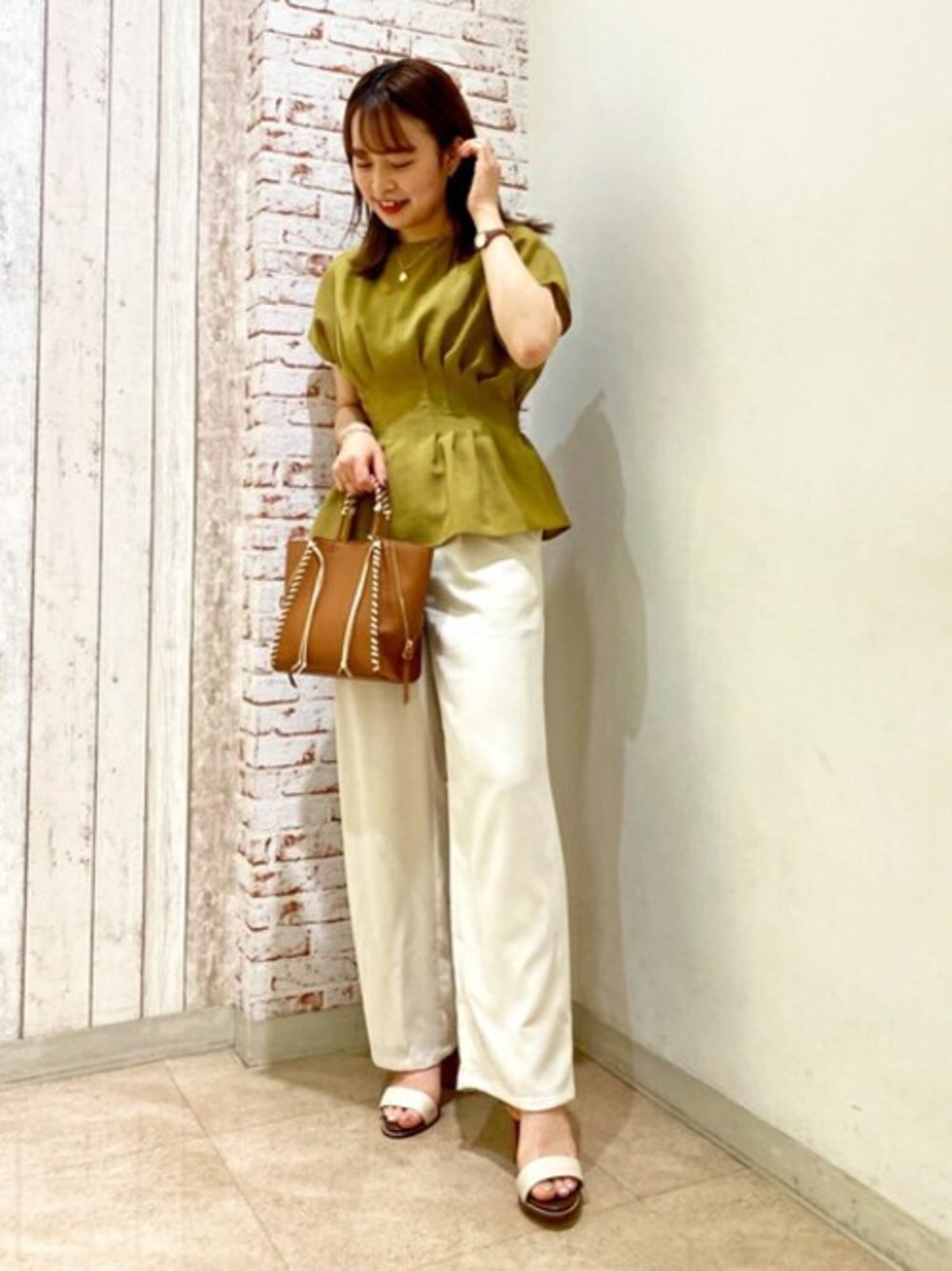ドライタッチの素材で軽やかな着心地なブラウスはボトムスの合わせ次第でオンオフでお召し頂けます♪ やや高めの位置でのウエストタックでメリハリがつきスタイルアップ効果も!☺︎