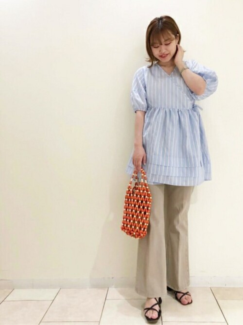 大人可愛いカシュクールブラウス。デニムと合わせてリラックス感あるコーデにしてみました♡袖のふわっとしたボリュームがポイントで、気になる二の腕もカバーしてくれます!