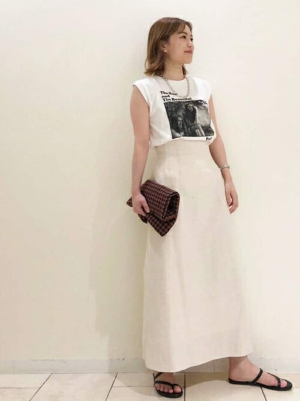 N. STAFF(N. Natural Beauty Basic* OFFICE)のスカート「【S Size Line】バックレースアップ麻混スカート」を使ったコーディネート