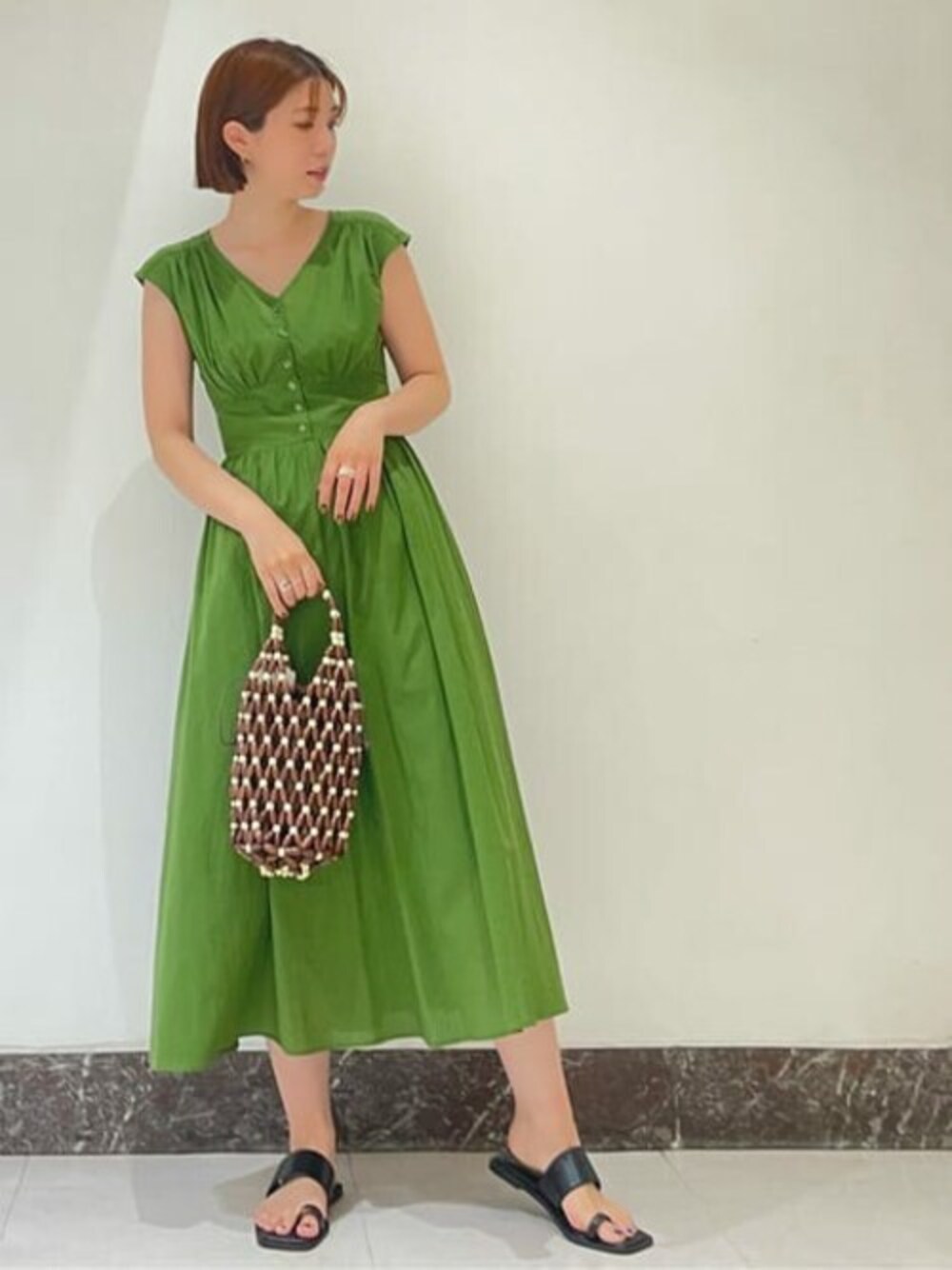 N. STAFF(N. Natural Beauty Basic* OFFICE)のワンピース「Vネックギャザーワンピース」を使ったコーディネート