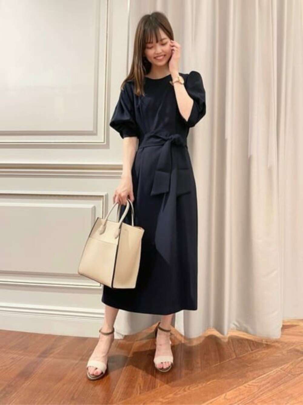 さりげないボリュームスリーブとサッシュベルトでコンサバになりすぎないワンピース♡お食事会などのフォーマルシーンでも大活躍間違いなしの1枚です◎ふんわりと広がる裾がフェミニンな印象です♩