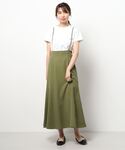 程よい厚手の生地でマーメイドラインがきれいにでるスカート。サスペンダーが取り外し可能なのでトップスに合わせて雰囲気を変えて着まわせます♪ 柔らかなカーキなので、秋カラーでも先取りしやすいです☺︎ボーダーカットソーはゆったりしたフォルムで着心地抜群です!