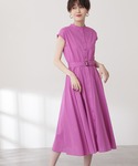 パキッとしたピンクのカラーが魅力のワンピースです♪縦ラインとウエストベルトにより、バランスよくスッキリとしたシルエットを演出します◎1枚でももちろんコーデが決まりますが、レイヤードスタイルも可愛いです♡