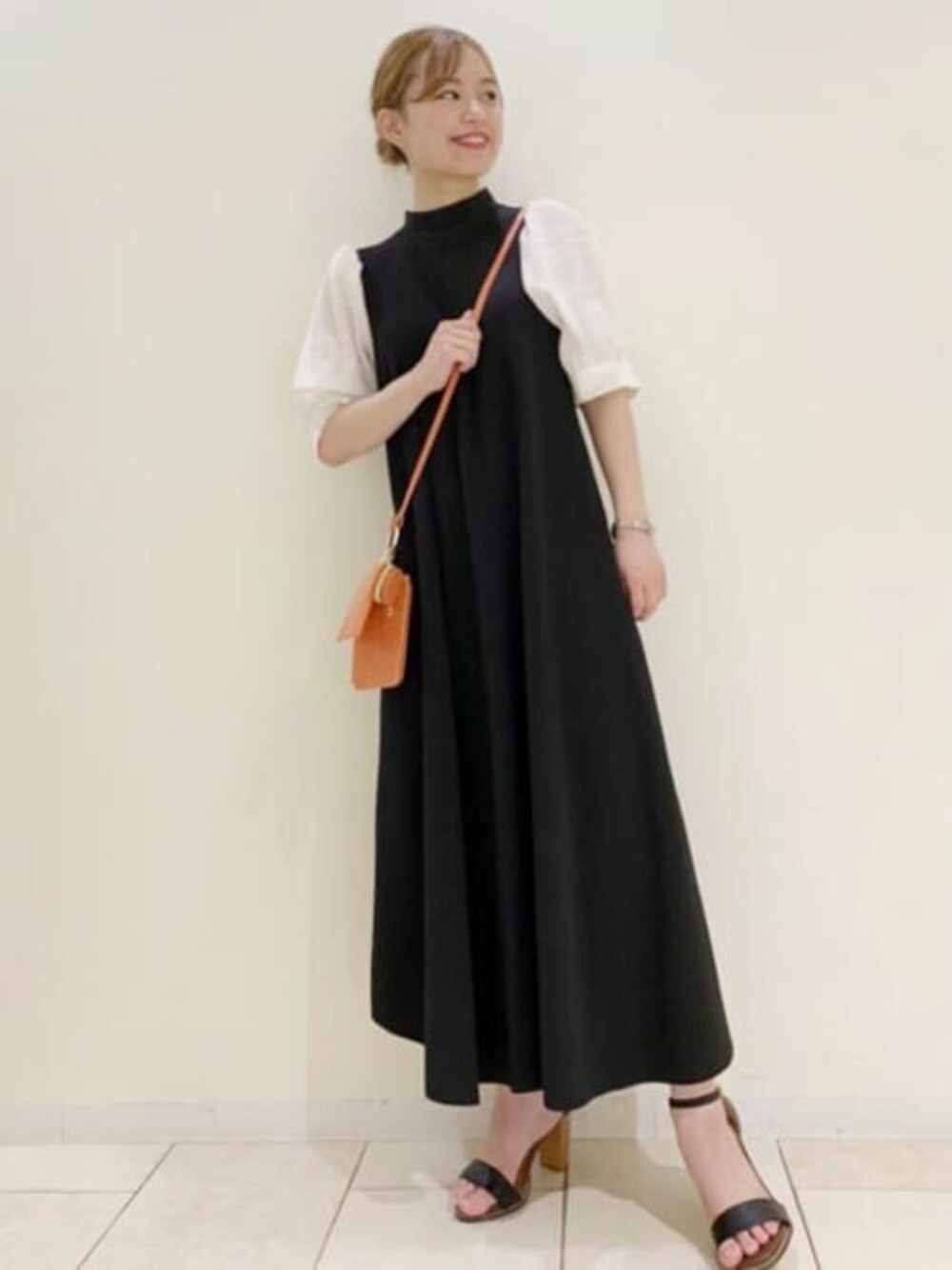 大人気のパフスリーブワンピース♡モノトーンにカラー小物をプラスして大人っぽく着てみました☺︎たっぷりのAラインで着心地も抜群です◎