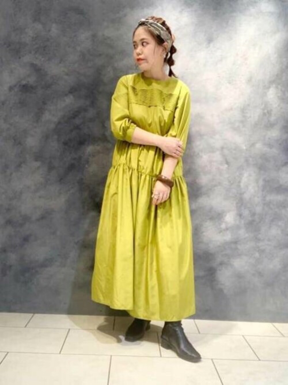 スカート部分にティアードが施されていますが、ボリュームは少ないのでスッキリ着れます! イエローの色味が秋らしさを演出してくれます☺︎