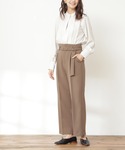 ON/OFF兼用で使えるパンツコーデ♡ベルトボタンのデザインが可愛いです♩ボリューム感が女性らしさを演出してくれるブラウスとの相性が◎首元が締まりすぎていないのでスッキリ見えするのも嬉しいポイントです!