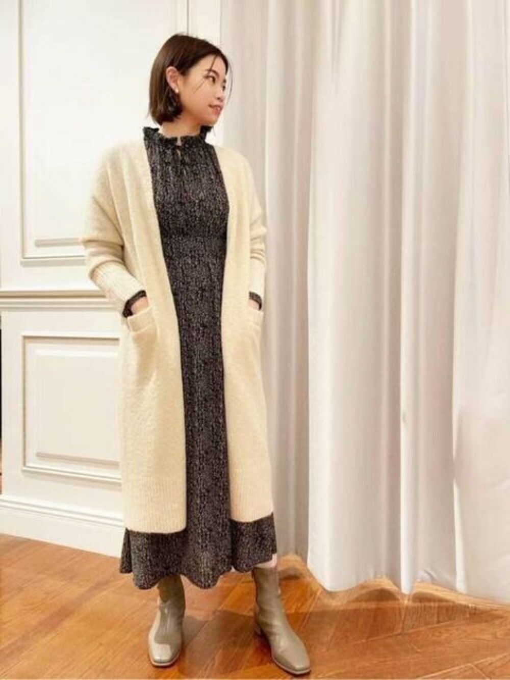 【POINT】肌寒い日が増えてきたこの時期にぴったりな大人カジュアルコーデです♪落ち着いたカラーの小花柄プリントなので、オンとオフ両方楽しめます◎ 【年齢:30代前半/身長:162cm/パーソナルカラー:イエベ春/普段Mサイズ 】