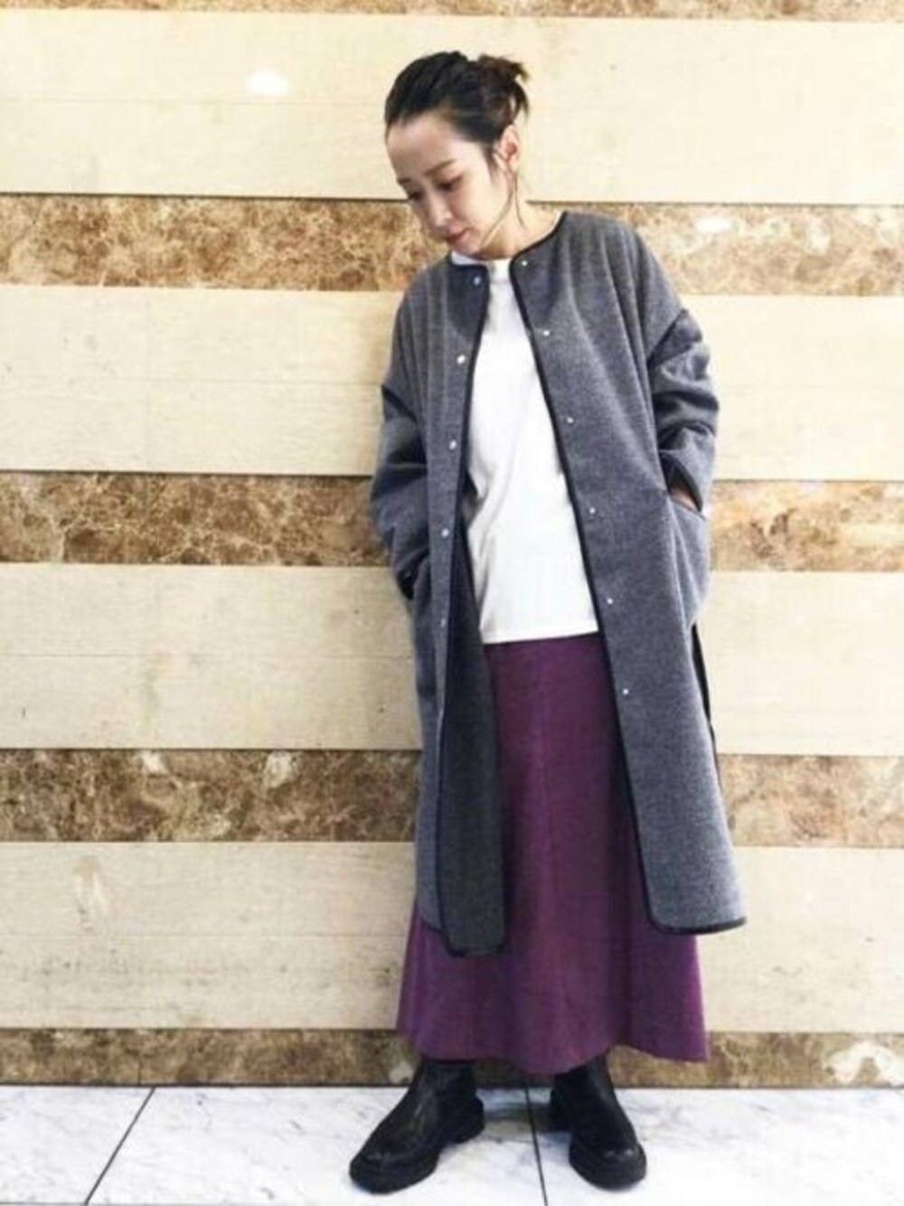 トレンドのパイピングコートでです♫ ヘリンボーンが大人っぽい印象ですが、ゆったりサイズでカジュアルに着て頂けます。 カラーボトムスも映えるロングコートで、ジャケットやトレンチコートとは違った着こなしで、差別化できるアイテムです。 身長:157cm/普段サイズ:M/着用サイズ:M 着心地:裏地なしで見ため以上に柔らかく、軽いです。