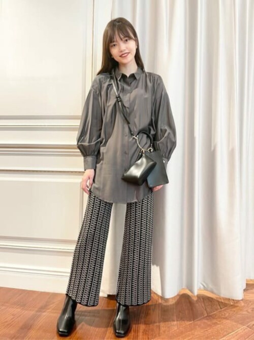 ブラックでシックにまとめたパンツコーデ。N.のニットパンツは履き心地抜群でありながら美シルエットで楽にスタイルアップが叶う優れものです♡トップスをあえてグレーにすることで重たすぎないブラックコーデが完成します