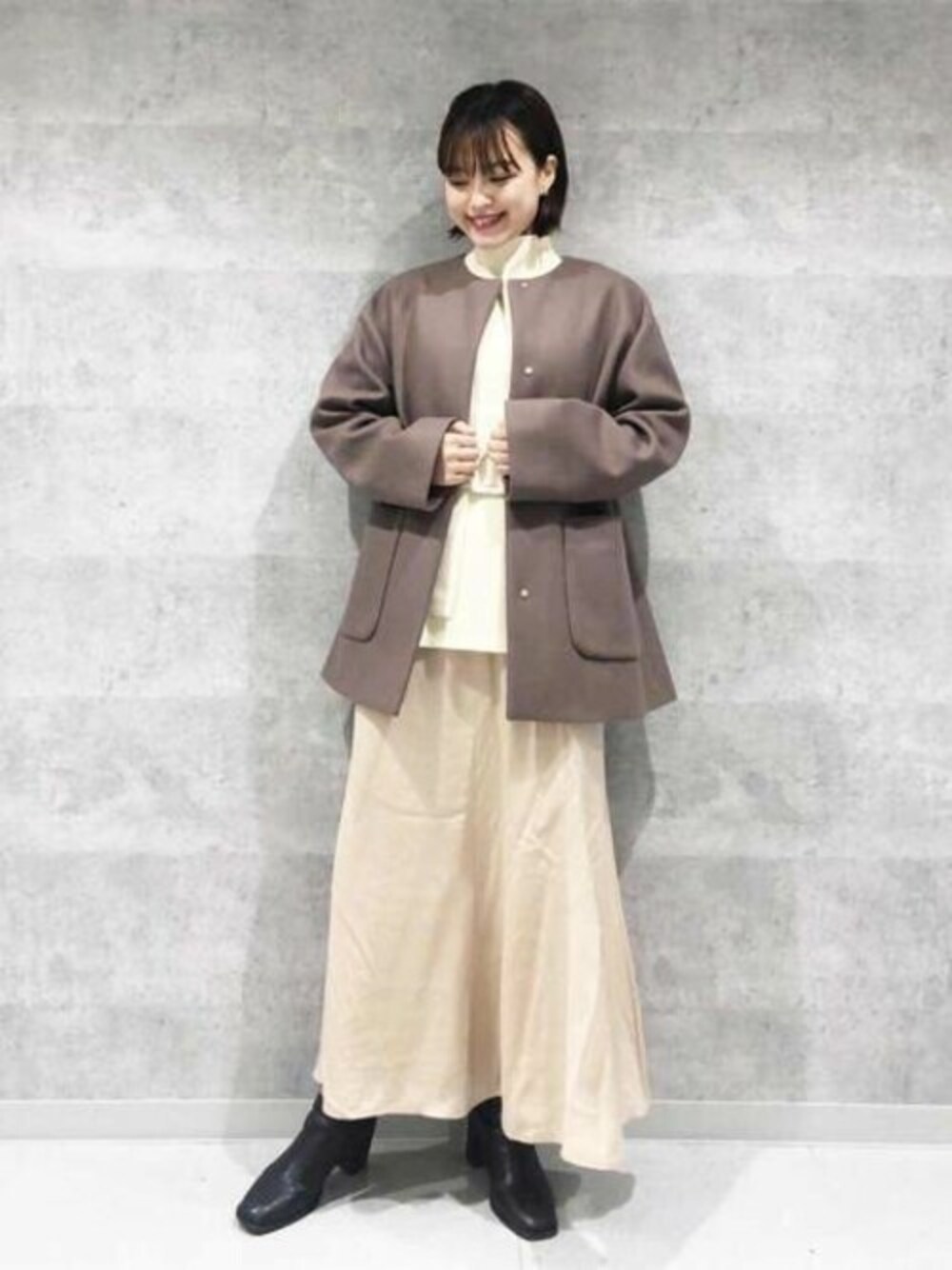 昨年大人気だったHAMILTONシリーズからショートコートが登場!上質なラムウールを使用しており、滑らかな肌触りが魅力的です♡セットアップは着るだけで、ワントーンのコーディネートが決まります◎ニットは少し長めの着丈で、気になるおしりもカバーしてくれます!スカートはウエストがゴムなので、ストレスフリーの着心地です♡単品使いも出来る万能なアイテム是非、お試しくださいませ☺︎