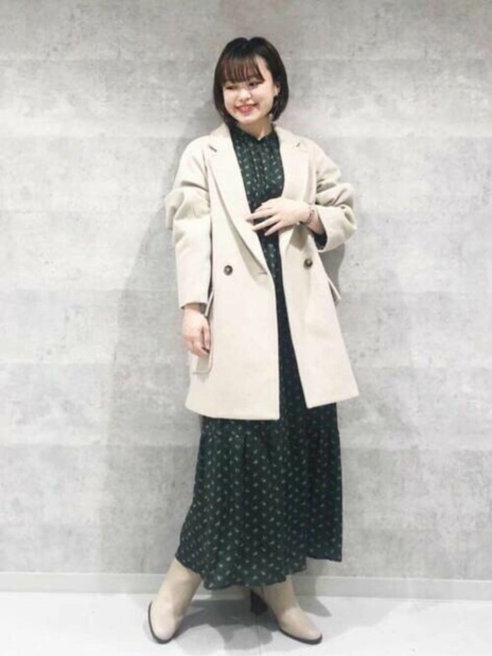 トレンドのショートコート♡ゆったりめのシルエットなので、ニットも着込むことが出来ます◎ワンピースは落ち着いたカラー展開で、甘くなりすぎず、大人も着れる1着です♪1枚でさらっと着こなすのはもちろん、ニットを重ねてスカート風に着回すのもおすすめです◎身体のラインも拾わないので、安心して着用頂けます☺︎