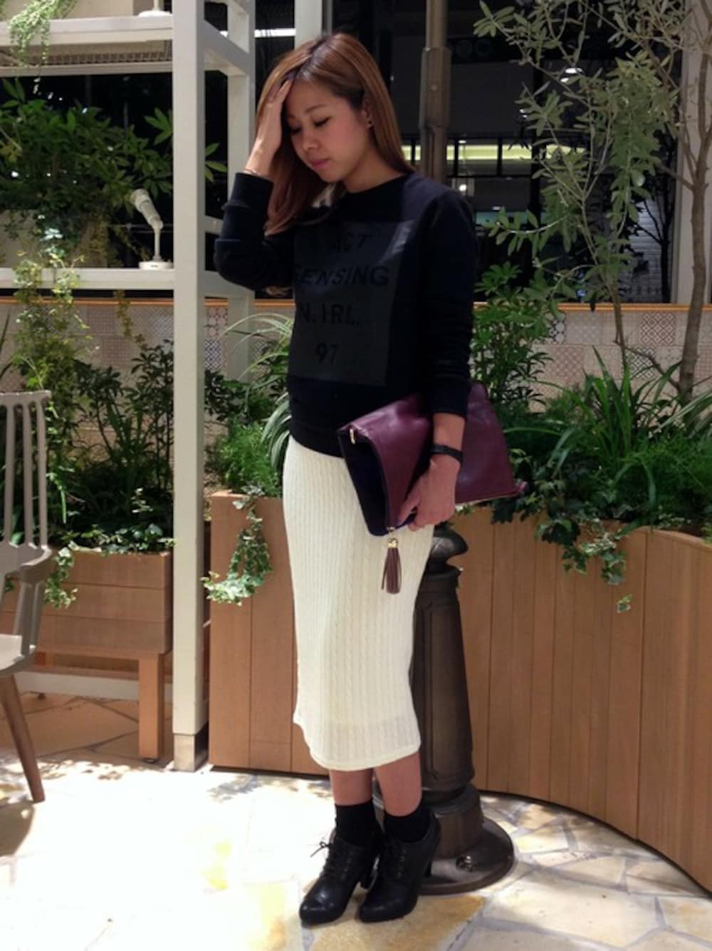 ブラックのロゴスウェットにホワイトのニットスカート。潔いモノトーンコーデがクールな印象に♪ N.リアルSHOPではノベルティフェアを開催中です!!是非この機会にご利用くださいませ!! ※数に限りがございます。予めご了承くださいませ。 ※店舗により開催日が異なります。 ▼詳しくはこちら http://n.naturalbeautybasic.com/news/2014/09/page_10970.html