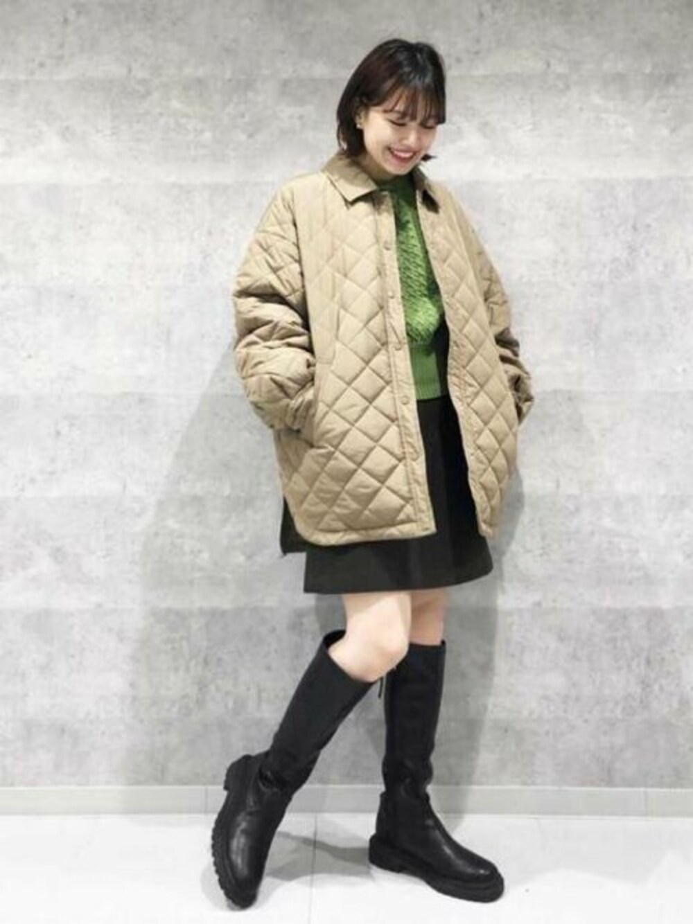 今季トレンドのキルティングアウター☺︎カラーのコーディネートにも馴染みやすいカーキを着てみました♡ヒップが隠れ安心できる着丈です♪オーバーサイズですが、裾にカーブスリットが入っているので、ボリュームが出過ぎないです◎