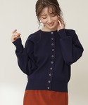 【POINT 】 N.大人気のドットボタンニット。今回なんと新色でネイビーが登場しました!後ろは丸みを帯びた女性らしいフォルム感のあるシルエットです。中にタートルネックやブラウスを合わせて羽織りとして 着るのも可愛いです。また、インもしやすいのでトップスとして使うのもオススメです!*****年齢20代前半/158cm/普通サイズM /パーソナルカラー:ブルベウィンター*****