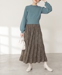 細かな花柄にティアードデザインの大人らしいスカートです。畦編みのニットはショート丈なのでスタイルアップに◎レイヤードのコーデも楽しめます♪