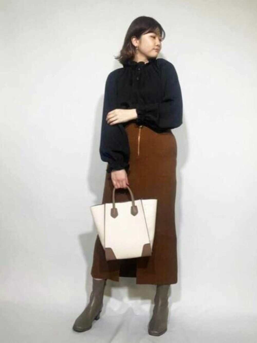 【POINT 】 今から春先まで使えるフリルネックブラウス。首元のフリルは締めつけも無く着心地良いです。また、首元にあるフックを開けてVネックのような形でもお使い頂けます。デニムやカラーパンツ等と合わせたカジュアルコーデも楽しめるオンオフ活躍間違いなしの1枚です♪*****年齢20代前半/158cm/普通サイズM /パーソナルカラー:ブルベウィンター*****