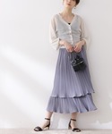 肌触り抜群のムジジャガードニットカーディガン◎ふんわりした滑らかな肌触りにはスタッフもつい夢中に♪見た目が可愛いだけではなく地厚で保温性が高い、寒さ知らずの1枚です!アームホールが大きいのでトレーナーや厚地のニットの上にもラクラク羽織って頂けます♪今回はパープルのニュアンスカラーで揃え、動きが出るティアードスカートでエアリーな印象に仕上げました♡ ****年齢:20代前半/身長:157cm/パーソナルカラー:ブルベサマー/骨格:ウェーブ/普段サイズ:S〜M****