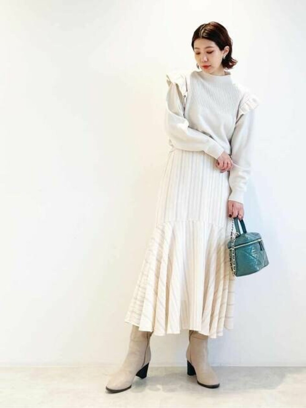 N. STAFF(N. Natural Beauty Basic* OFFICE)のニット/セーター「◆ドロップフリルショルダーニット」を使ったコーディネート