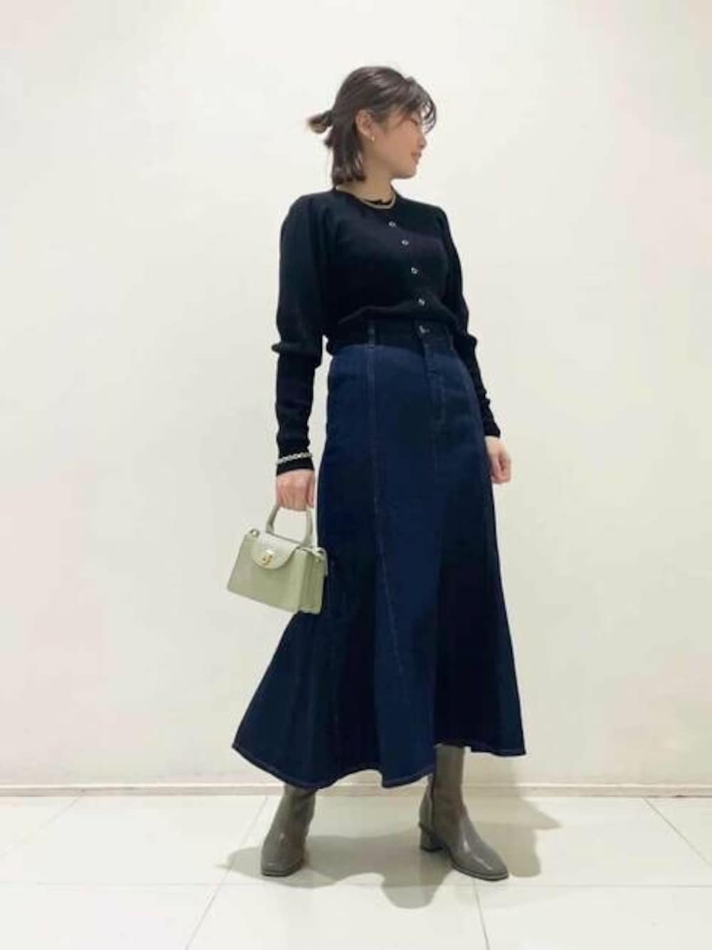 大人可愛いマーメイドデニムスカート。体のライン、シルエットを綺麗に見せてくれる優れものです♪デニムですが伸縮性があり、トップスもインしやすく履き心地も抜群です♡ コンパクトニットをインしても良いですし、オーバーサイズのカラーニットやスウェットをアウトで合わせたコーデもオススメです♪*****年齢20代前半/158cm/普通サイズM /パーソナルカラー:ブルベウィンター*****
