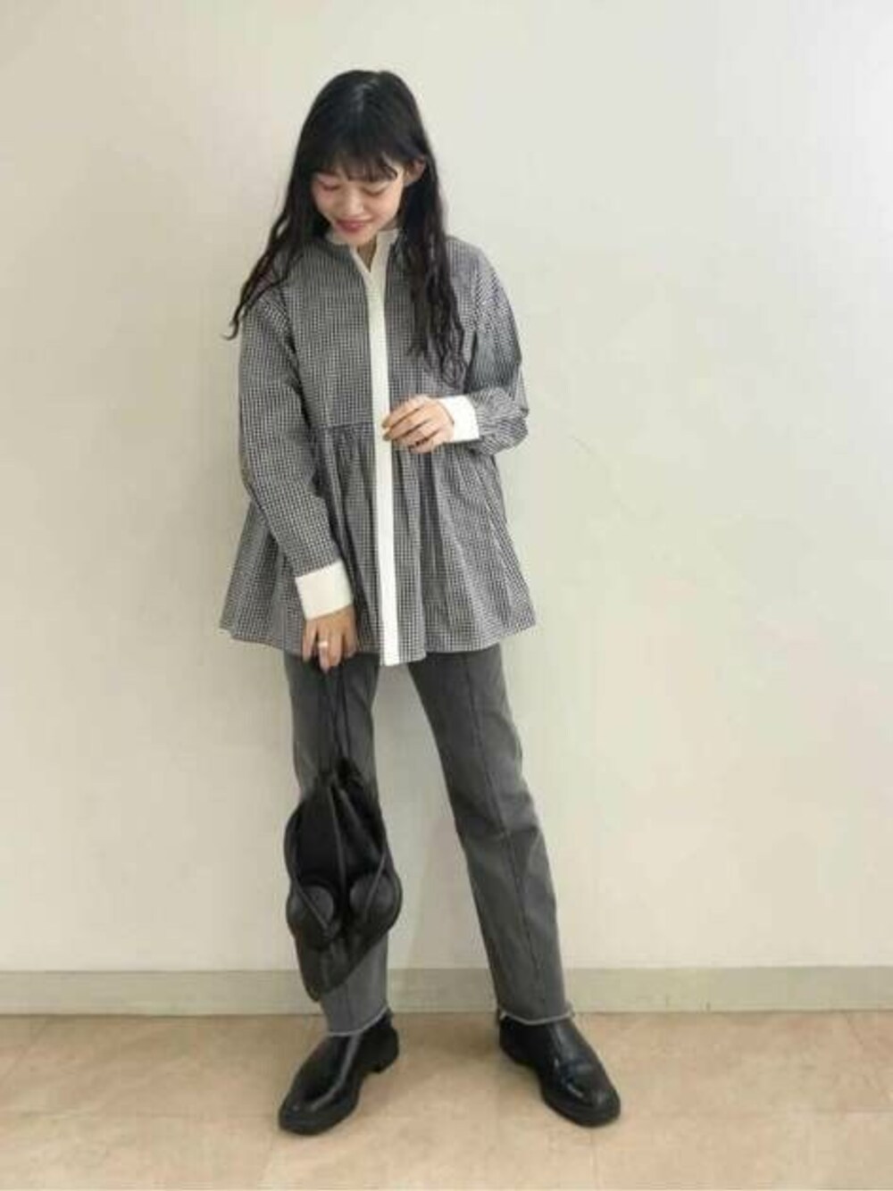 ふんわり広がるシルエットが可愛いペプラムブラウス。 モノトーンでまとめつつギンガムチェックで春らしさを⌾ デニムは前後差のあるカットオフで足元まで洗練された大人のカジュアルスタイルに☺︎