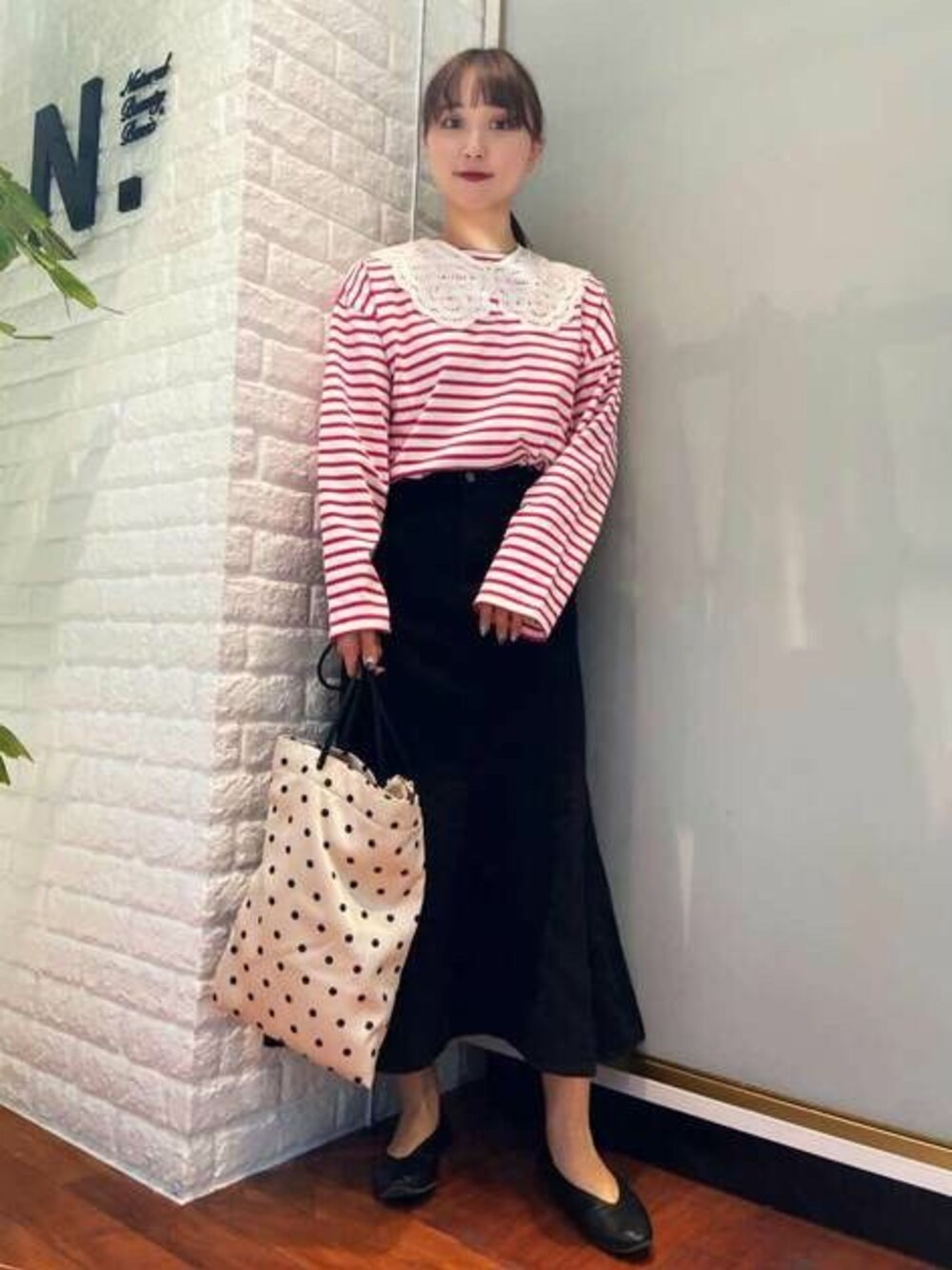 【Point】春の新作が店舗にもたくさん入荷致しました!♡こちらのボーダーカットソーは程よくゆったりしたシルエットが可愛く、春らしいピンクのボーダーが1枚でコーデの主役になります☺︎マーメイドスカートはデニム生地でとても履きやすく、広がりも甘すぎないのでカジュアルな合わせに最適です!マーメイドラインが高めの位置から入っているので、足長効果も抜群です! 年齢:20代前半/身長:163cm/普段サイズ:M.L/パーソナルカラー:ブルベ冬/骨格:ナチュラル