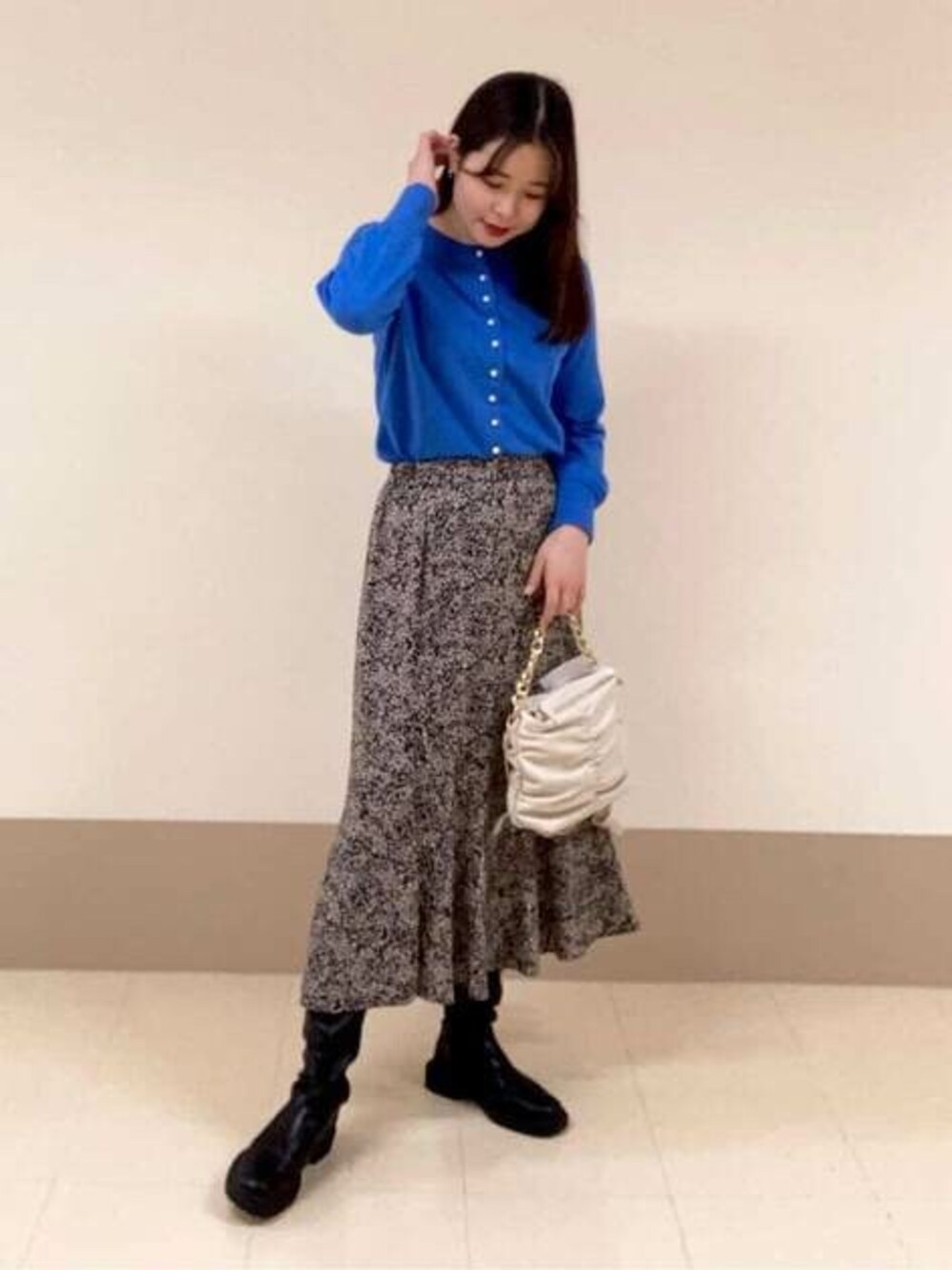 【色物×人気スカート】大人気のパールボタンが可愛いニットカーデです!サラッと着れる素材感で春先まで活躍間違え無しです!N.で大人気のマーメイドスカートは大人っぽい小花柄で入荷しました!着回しも抜群アイテムです!****年齢20代前半/身長166cm/普通サイズM.L/パーソナルカラーイエベ春****