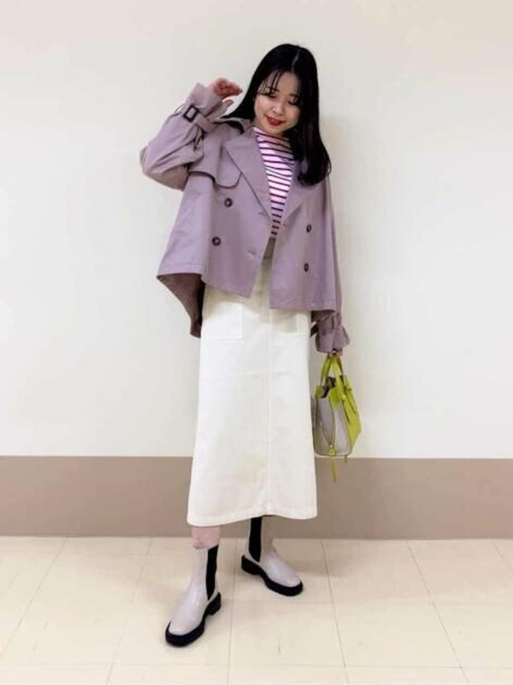 【気分の上がる春コーデ】今年も可愛い色味のボーダーが入荷しました♡程よい余裕感で着心地抜群です!またデニムスカートで大人カジュアルなコーデにしてみました◎春先に使えるショートトレンチコートは後ろが長めでサッと羽織るだけでバランス良く使えます!****年齢20代前半/身長166cm/普通サイズM.L/パーソナルカラーイエベ春****