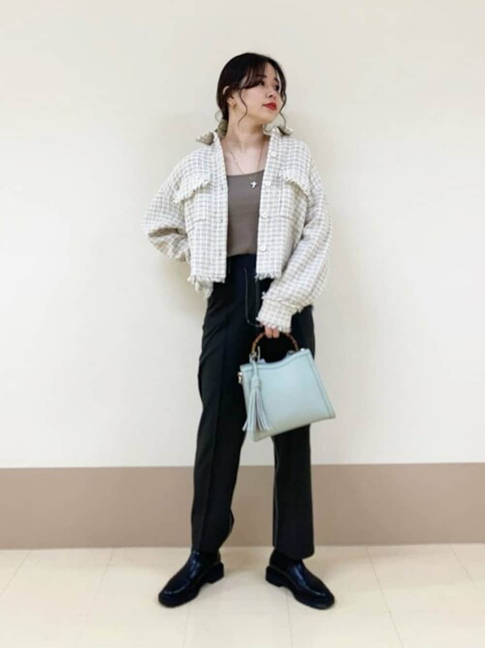 【ツイードをかっこよく着る】色んなイメージでカジュアルからきれいめまで使って頂けるツイードジャケットです!シルエットの綺麗なステッチのデザインがポイントのストレートパンツと合わせてみました!※アクセサリー私物****年齢20代前半/身長166cm/普通サイズM.L/パーソナルカラーイエベ春****