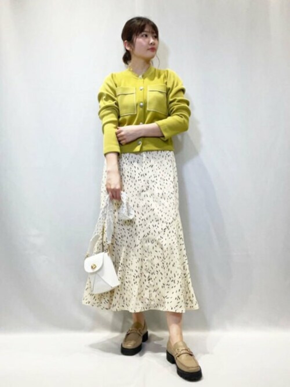 【POINT 】 大人カジュアルにピッタリ!デザインドットスカート。特徴的なドットのデザインが目を引く大人可愛いスカートです♡ウエストはゴムで伸縮性がありストレスフリーな着心地です。ベーシックカラーなのでトップスは今期トレンドのカラーアイテムとの合わせがオススメです♪*****年齢20代前半/158cm/普通サイズM /パーソナルカラー:ブルベウィンター*****