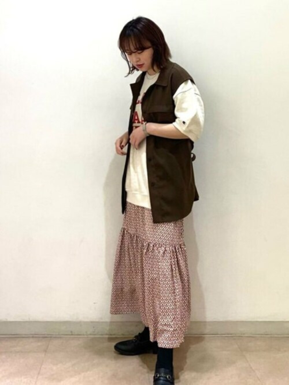 この春おすすめのレイヤードスタイル♪ カジュアルなコーディネートにベストをプラスするだけでいつもと違う印象に。暖かくなれば一枚でもキマる優れものです!足元はスニーカー合わせでも◎
