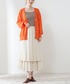 ふんわりと広がるティアードスカートにジャケットを合わせて甘さを抑えた大人コーディネート。ロゴTシャツを取り入れてもカジュアル過ぎないスタイルに◎ ジャケットは程良く透ける素材で夏まで長くお使い頂けます!オレンジを差し色で入れてあげるとこなれ感もグッとアップします♪