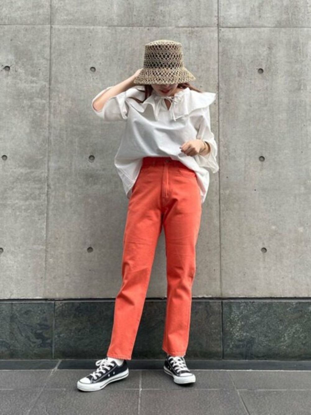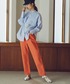 カラーデニムで目を引く春コーデに◎ フリルが可愛いブラウスに、デニム合わせで女性らしいカジュアルスタイルに仕上げました♪ N.のデニムの中で一番ウエストが細いので、いつもSサイズでちょうど良い方はワンサイズあげても着られそうです!****年齢:20代前半/身長:157cm/パーソナルカラー:ブルベサマー/骨格:ウェーブ/普段サイズ:S〜M****