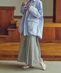 N.で大人気のブラウスに5部袖が登場!♪ギンガムチェックのスカート合わせるとフェミニンな印象になるので、グリーンのカーディガンを肩掛けしてカジュアルダウンしました◎ *****20代前半/157cm/ブルベ夏/骨格ウェーブ*****