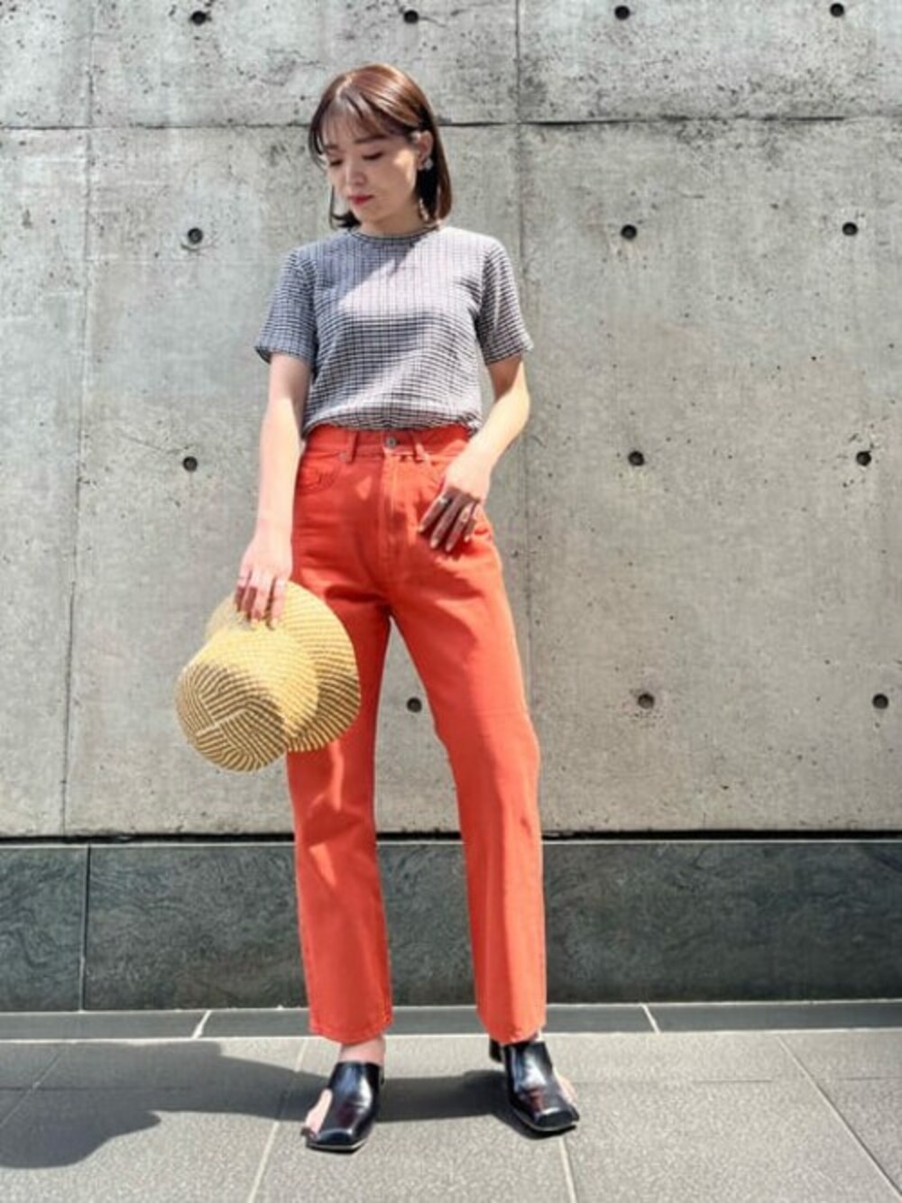 コーデの主役になるギンガムチェックTシャツ☻ ぴたっとしすぎないシルエットでボトムを選ばず着回せます◎ 凹凸感のある素材で肌触りも軽く、汗染みやインナーの透けも気にならないので、夏に向けて大活躍間違いなしです! *****20代後半/ 157cm / ブルベ夏 / 骨格ウェーブ / 普段サイズS~M *****