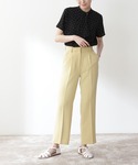 ブラウスが主役のカラーコーデ。 インスタイルでブラウスの三角ケープが引き立ちウエスト周りをスッキリ見せてくれます♪さらっとした肌触りで心地良い1枚。 パンツはタックが施され、程よいゆとりでリラックスしつつもスタイルアップを叶えてくれるシルエットです⌾