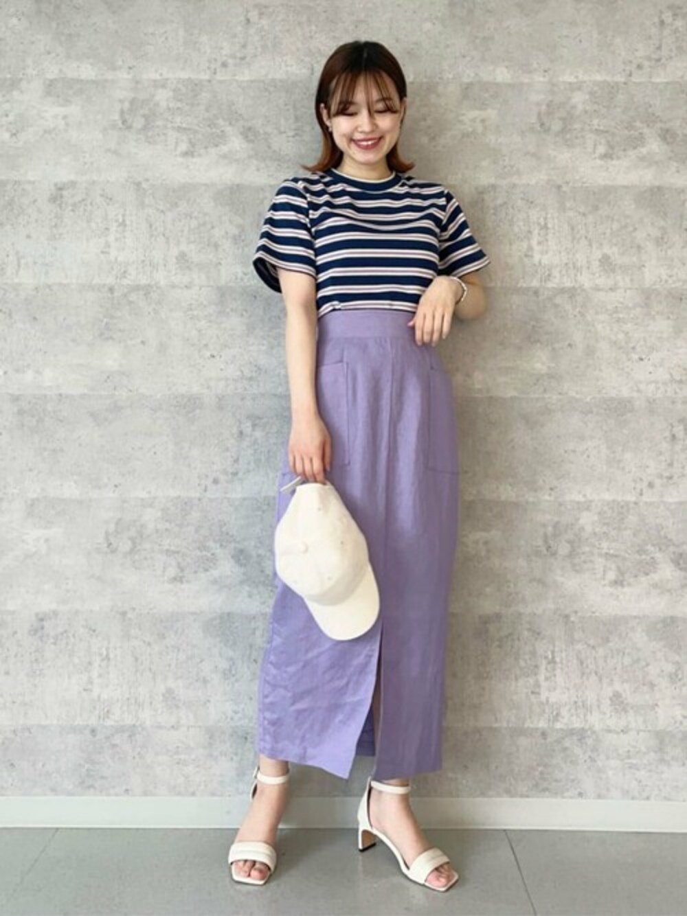 毎年大人気の麻混タイトスカートが入荷致しました!大きなポケットが可愛いですよね♡春夏、大活躍なマルチボーダーTシャツと相性抜群です♪****年齢:20代前半/身長:156cm/パーソナルカラー:イエベ秋/骨格:ストレート/普段サイズ:S〜M****