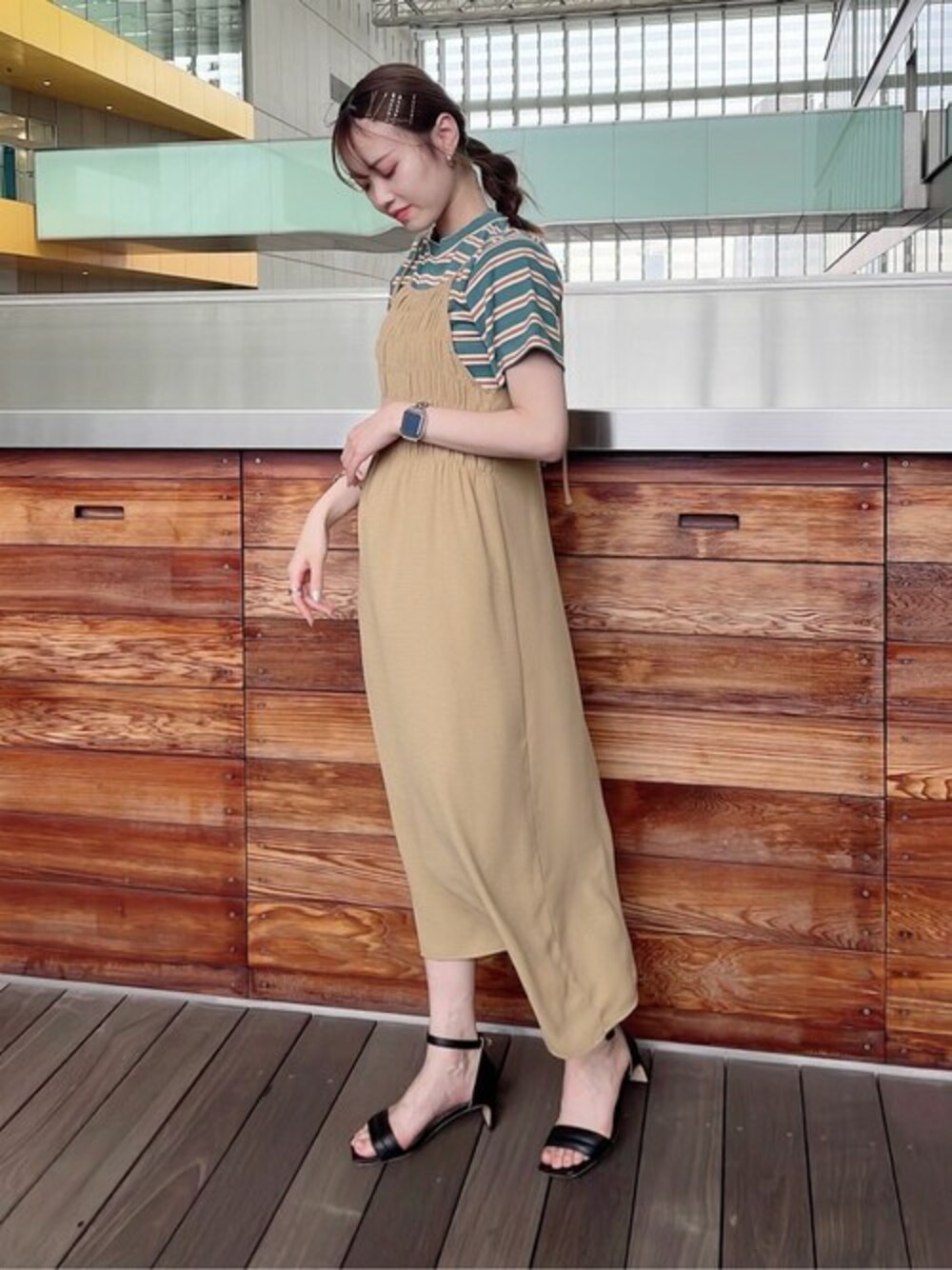 配色が可愛いボーダーカットソーがポイントのビタミンカラーコーデ♡春先大活躍のキャミワンピは前後2wayなので着回し力も◎きれいめサンダルを合わせれば大人も楽しめるカジュアルスタイリングが叶います☺︎