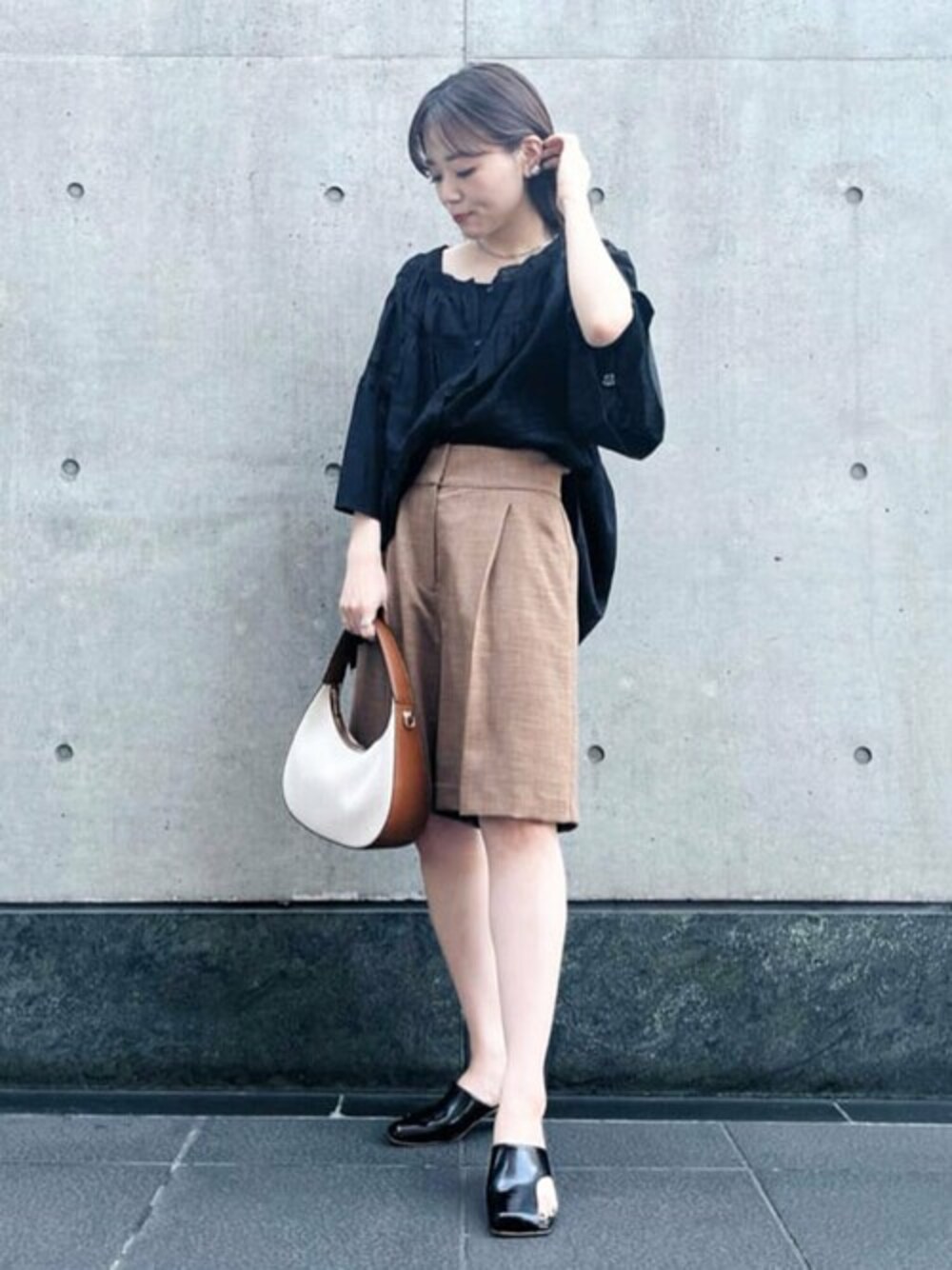 大人かわいいハーフパンツ☻ リネンライクな素材がきれいめな印象に仕上げてくれます。 タック入りで太もものラインを拾いにくく、丈も膝にかかるくらいの丈なのでハーフパンツでも幼く見える心配なし♡ チュニックブラウスは七部袖で今の時期にぴったりな1枚◎ ボタンを全て開けて羽織としても使えます☻ 今回はスタイルアップを狙って片側インしました! *****20代後半/ 157cm / ブルベ夏 / 骨格ウェーブ / 普段サイズS~M *****