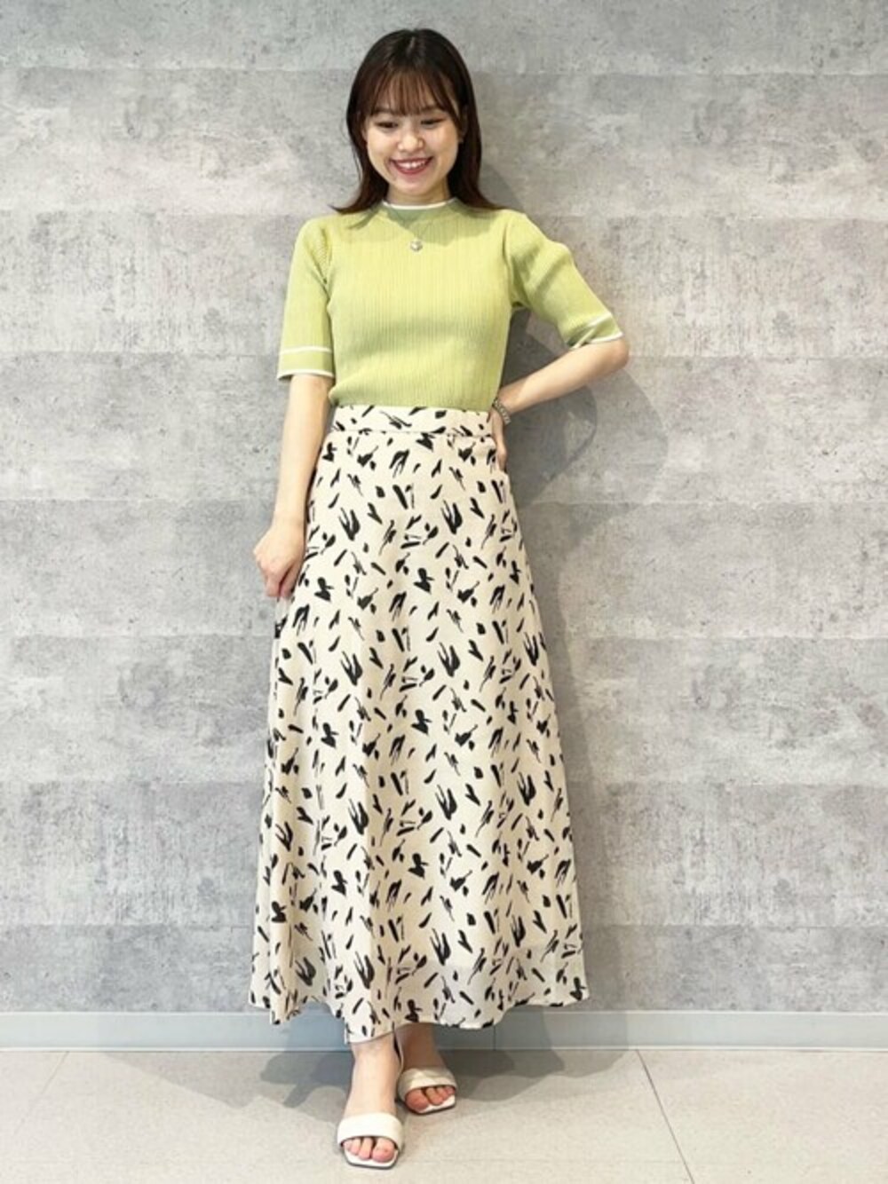バイカラーのラインが可愛いニットが入荷しました♡スカートと合わせて大人可愛いコーデに♪****年齢:20代前半/身長:156cm/パーソナルカラー:イエベ秋/骨格:ストレート/普段サイズ:S〜M****