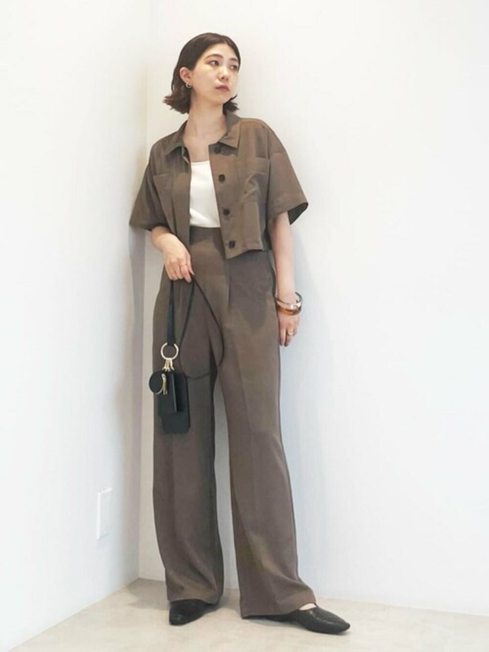 ウエストタックが腰回りをすっきりと見せてくれるストレートパンツは、トレンドのショートトップスと相性の良い1枚です❤︎トップス、ボトム共にサラッとした肌触りなので真夏も涼しく、着心地の良いアイテムです。