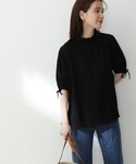 【POINT 】 袖口のリボンが可愛いポイント♪ふんわりとしたお袖が二の腕カバーもしつつ女性らしさも出してくれます♡首元や袖口は伸縮性のあるゴム仕様なので着心地も良いです!少しシアー感のあるお素材なのでブラックでも重たくならず夏でも涼し気にお使い頂けます♡*****年齢20代前半/158cm/普通サイズM /パーソナルカラー:ブルベウィンター*****