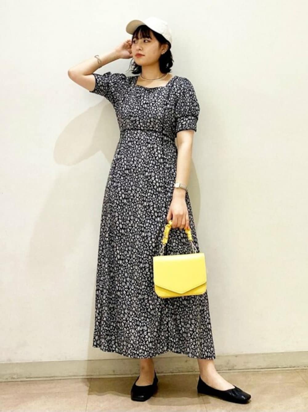 夏にぴったりなワンピース!スクエアネックなのでデコルテラインもスッキリ見えます!甘くなりがちな花柄ワンピースはフラットシューズやキャップを合わせてカジュアルに◎ 小物使いで雰囲気を変えられます♪ スニーカーを合わせても可愛いです!