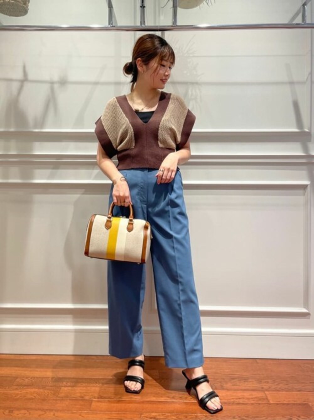 【POINT 】 様々なスタイリングが叶うニットベスト♪ニットベストは今から秋口にかけインナー次第で長く使える優れものです♪私はインナーにタンクトップを合わせていますが他にもTシャツや秋にかけては今季トレンドのシアートップス合わせも可愛いです♡ボトムも選ばず使えるイチオシアイテムです!*****年齢20代前半/158cm/普通サイズM /パーソナルカラー:ブルベウィンター*****