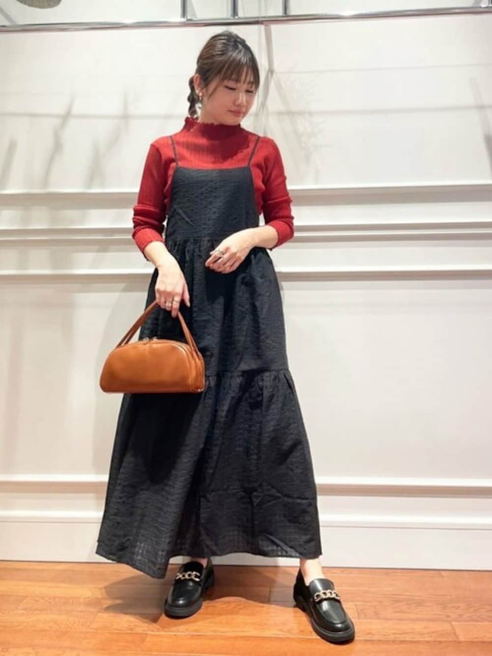 【POINT 】 ふんわりシルエットが可愛いティアードキャミワンピース♪肩紐は長さ調節可能なのでお好きな丈感でお召し頂けます。ブラックでもさりげなくチェック柄がデザインされているので軽やかな印象になります。インナー次第で長く使えるので今からの時期にオススメです♡*****年齢20代前半/158cm/普通サイズM /パーソナルカラー:ブルベウィンター*****