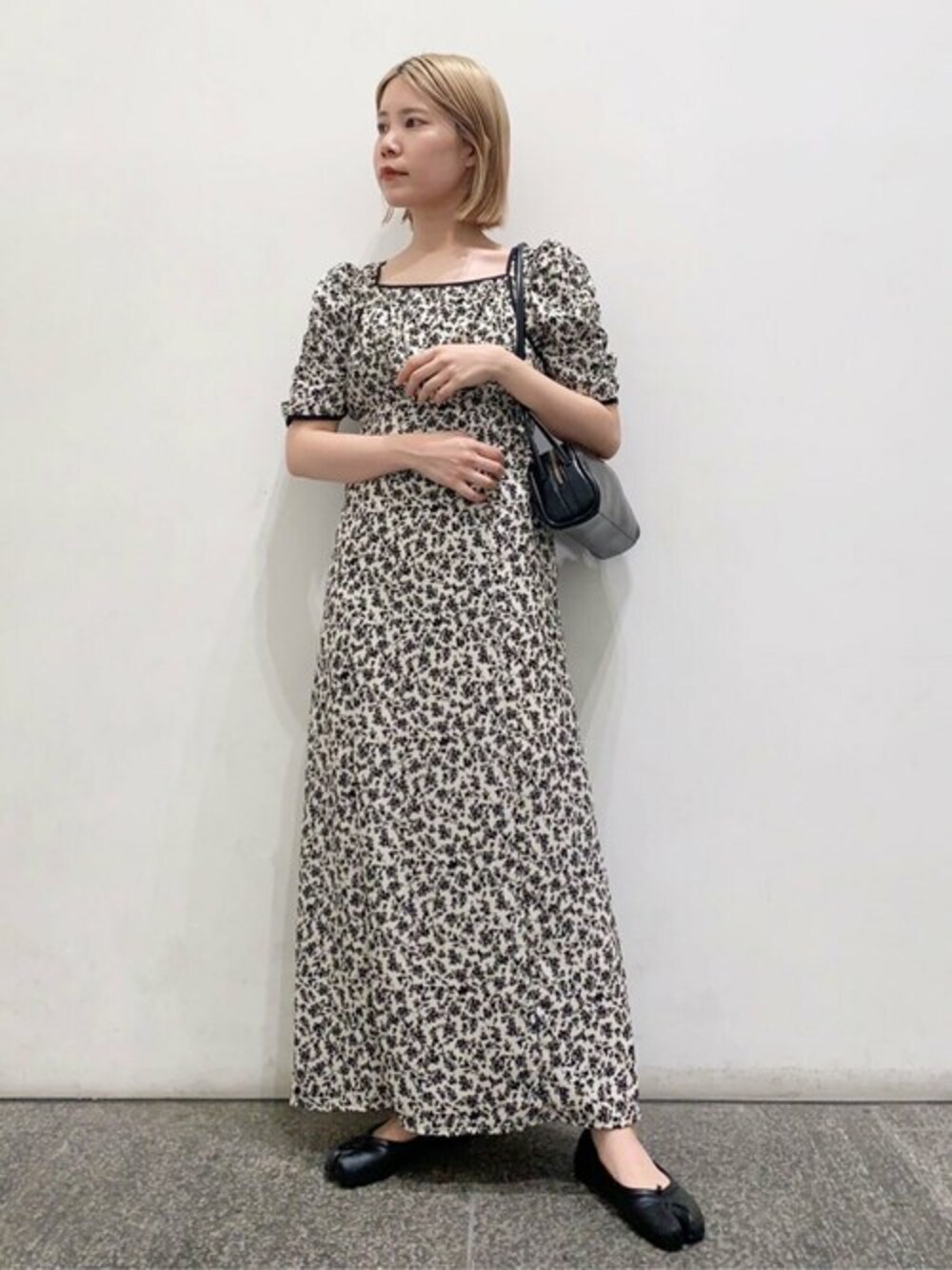 パイピングが施された程良くトレンドを取り入れたワンピースです◎こういった花柄のワンピースはフレアシルエットが多いと思いますが、こちらはストレートなので甘さも抑えられます☺︎胸元はスクエアカットなので、デコルテが綺麗に見えます。156cmで足首が隠れる着丈になりました。(ワンピースはMのワンサイズです)普段甘めなお洋服を着られない方でも挑戦して頂きやすいデザインです♡*****156cm/ブルベ冬/骨格ストレート*****