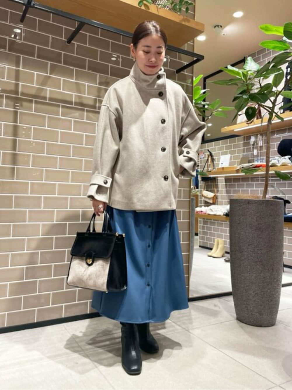 去年即完売したスタンドネックショートコートが入荷致しました♡ スタンドカラーのデザインで、トレンド感のあるコーデに仕上げてくれます!そして首元をしっかりカバーしてくれているので、マフラー要らずのが嬉しいポイント◎京都ポルタ店では、車を運転されるお客様に「脱がなくても座れるからショート丈が嬉しい」と好評です♪ ****年齢:20代前半/身長:157cm/パーソナルカラー:ブルベサマー/骨格:ウェーブ/普段サイズ:S〜M****
