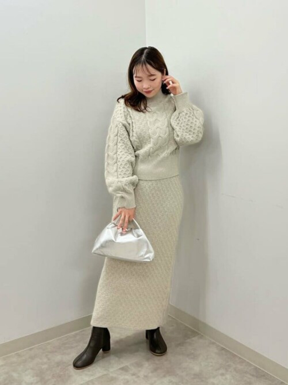 冬でも暖かく過ごせるニットセットアップです♪トップスは裾にリブが効いているのでスッキリと収まりよく着られます!袖のボリューム感も今年らしく可愛いです。セパレートでも使いやすいので、こちらのニットにデニム合わせとかもオススメです!スカートもラインを拾いすぎず透け感もないので安心してお召し頂けます。